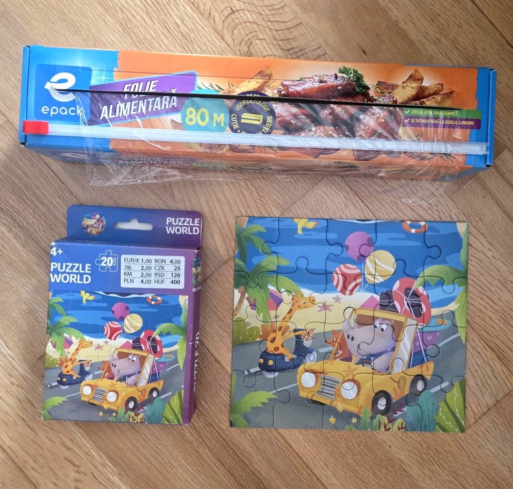 Da, o folosim în bucătărie, să acoperim castroane, oale și alte recipiente din care s-ar putea scurge ceva. Dar folia alimentară poate face mai mult de atât. Te ajută să păstrezi împreună piesele unui puzzle și să scapi de cutiile prea voluminoase. Soluția este ideală în vacanțe, când vrei să pui în bagaj cât mai multe jocuri și jucării cu care să vă distrați împreună.